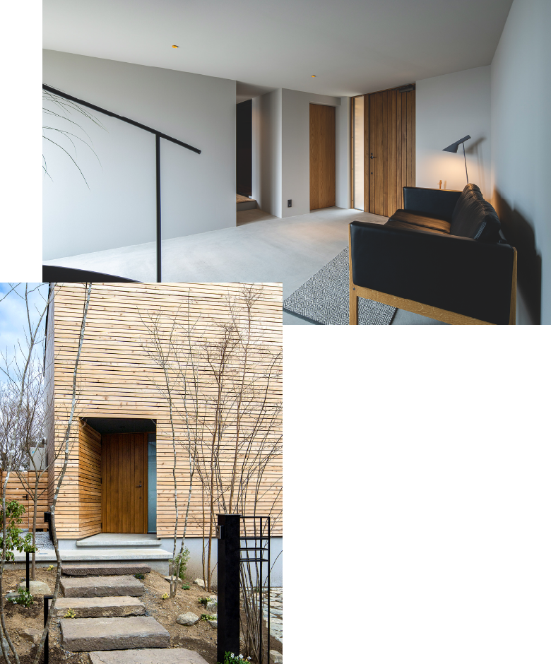 自然な風合いが魅力の木の外観家づくりでは、いつまでも新築時と変わらない綺麗さを保てる材が好まれる傾向があります。しかし、何十年も過ごしていく中で、経年変化がないのは不自然。時の経過ともに趣が変化する材を使った家こそ、愛着が湧くものだと考えています。