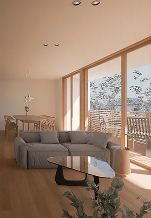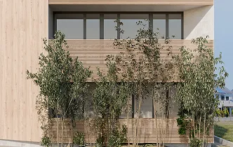 大きな窓を通して背の高い植栽が優しく寄り添う日々。